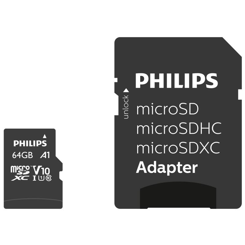 Carte Mémoire Micro SD Philips Class 10 64 Go+ Adaptateur
